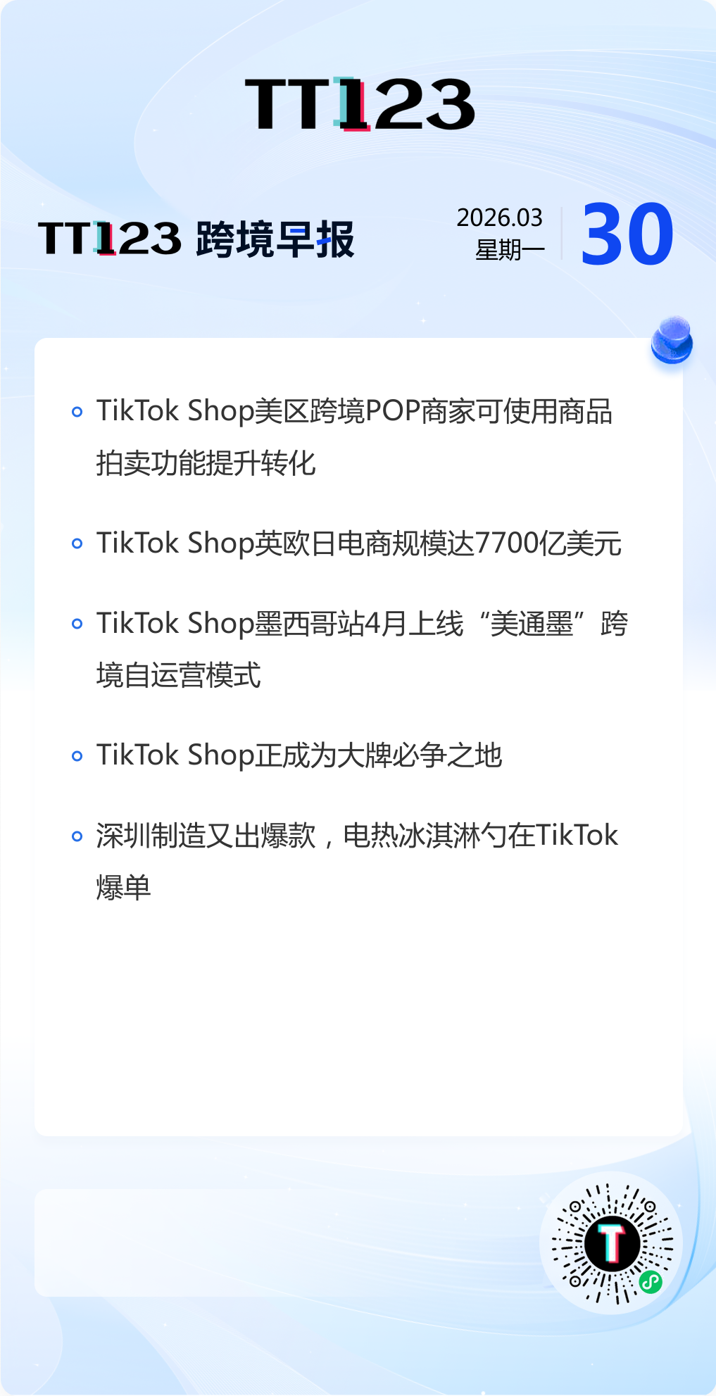 TT123获悉,3月28日消息,TikTok Shop墨西哥站宣布将于2026年4月正式推出“美通墨”跨境自运营模式,允许中国或美国主体商家从美国发货至墨西哥。该举措进一步完善平台自运营体系,目前已形成包括墨西哥本土自运营、中国主体跨境直邮、美通墨跨境自运营等在内的五种运营模式。数据显示,TikTok在墨西哥市场增长势头明显,2025年Hot Sale大促期间,平台在墨西哥的全域销售额突破420亿比索,用户日均使用时长达到1.5小时。在交易结构方面,短视频成为主要驱动力,贡献约58%的GMV。为抓住拉美电商发展机遇,平台正在重点招募快消、耐消和时尚等品类的“优质平价”商品商家。