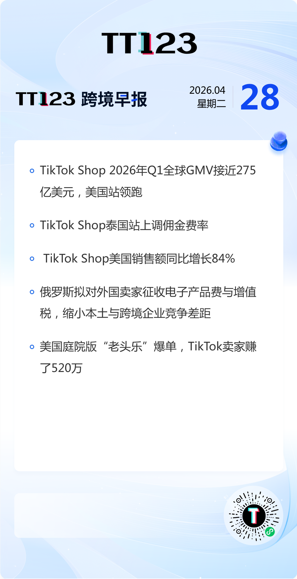 TikTok Shop 2026年Q1全球GMV接近275亿美元,美国站领跑